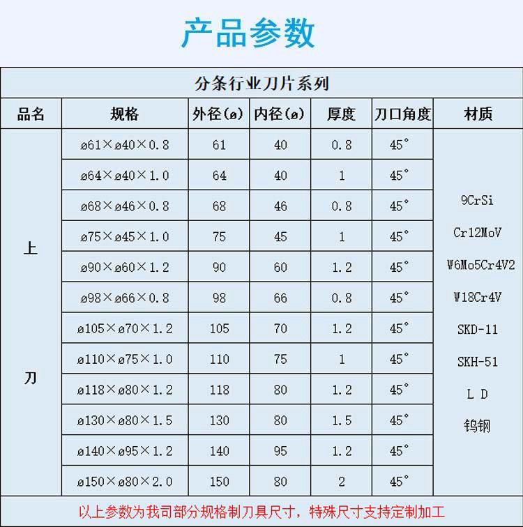 切卷分切圓刀、分切機刀片、切片刀、異型刀片